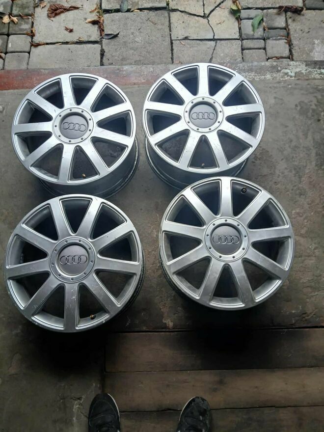 Komplet oryginalnych felg (4 szt) ) aluminiowych do samochodu Audi a3 8L. Felgi używane w dobrym stanie.Odbiór osobisty w MIkolowie.Marek